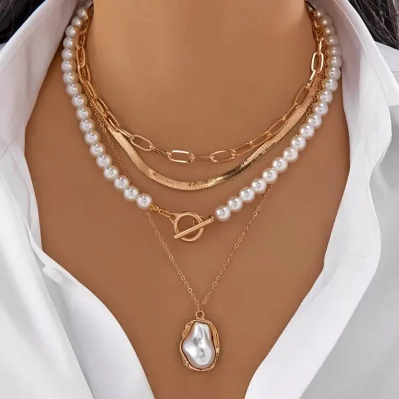 Trois couches délicates s'unissent, une chaîne de perles, une perlée et une métallique, créant une symphonie visuelle qui épouse votre cou avec une aisance captivante. Un équilibre parfait pour sublimer votre allure.